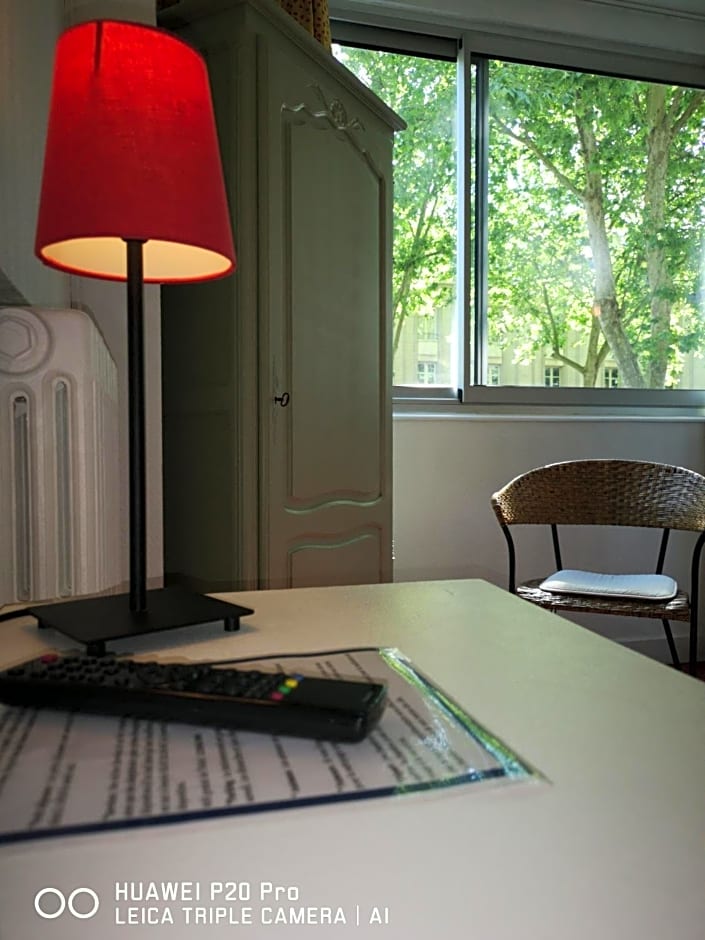 This room overlooks the avenue from the double-glazed windows. It has a mini-fridge, a flat-screen TV with French cable channels and a private bathroom.